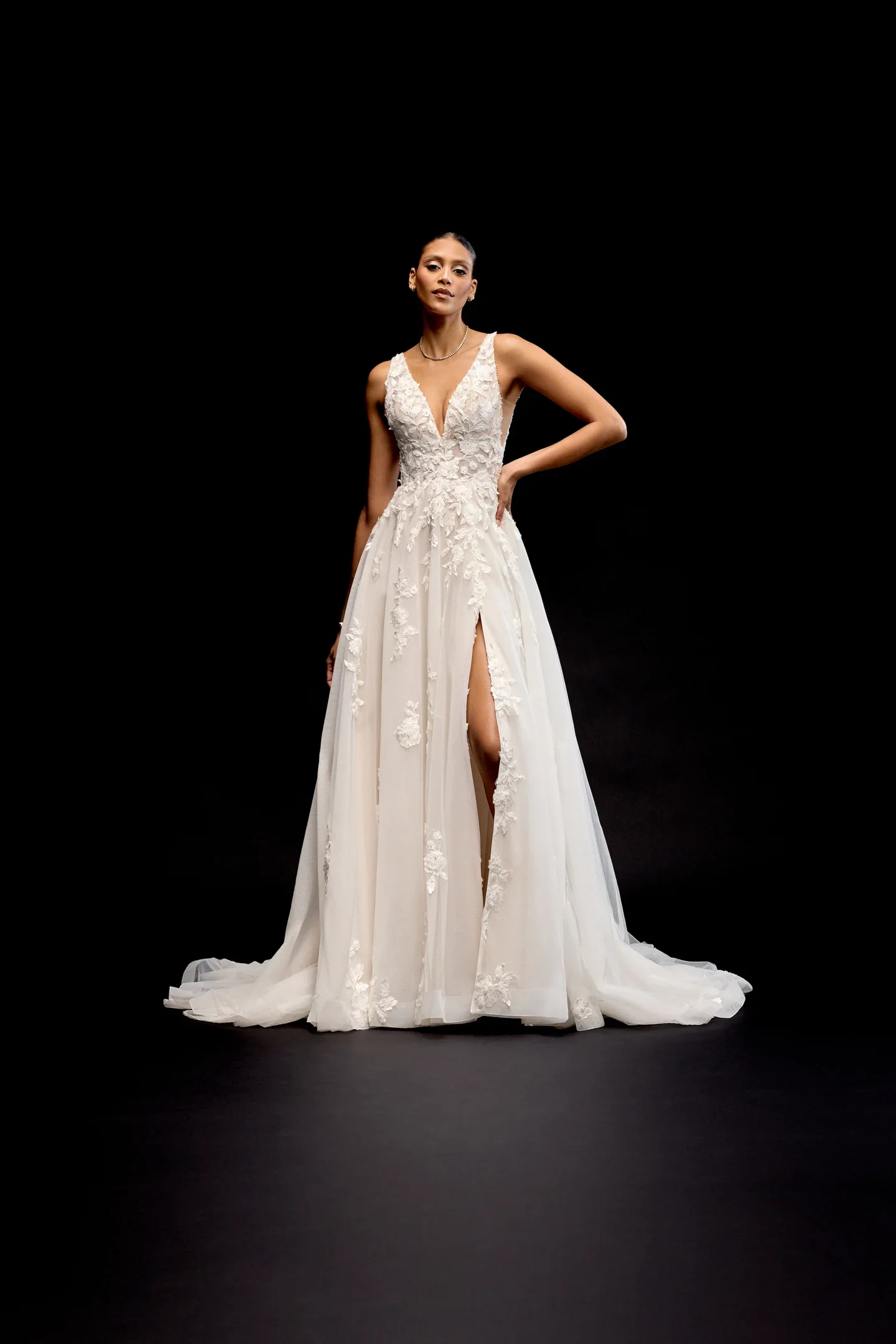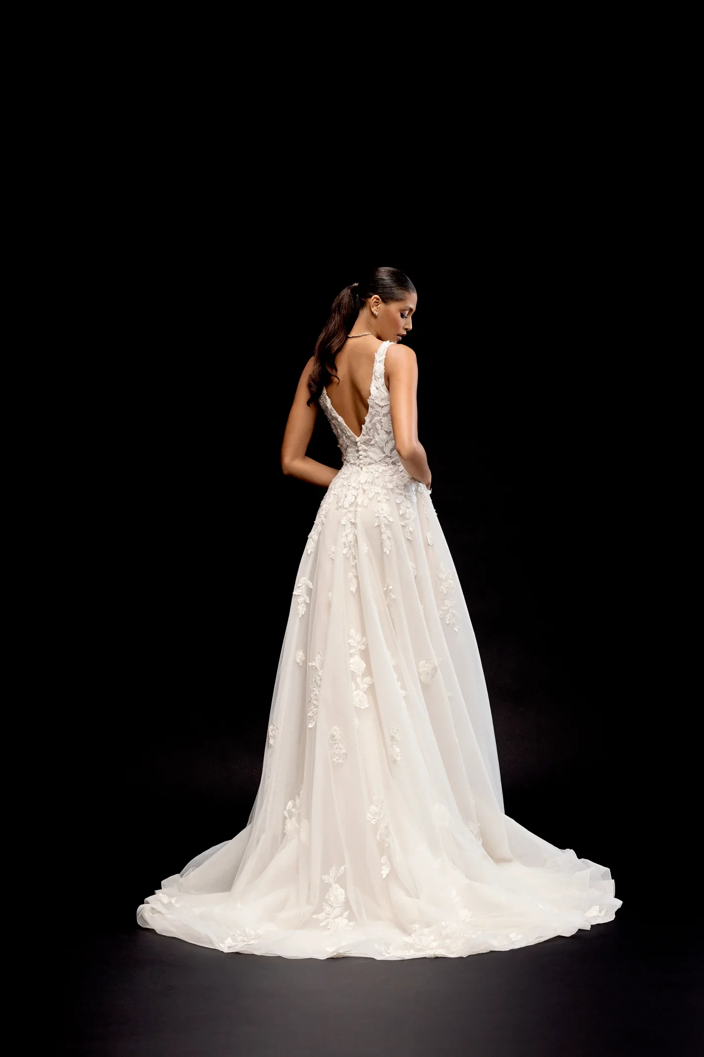 A-Line Lace Gown with Illusion Bodice and 3D Lace Appliqués